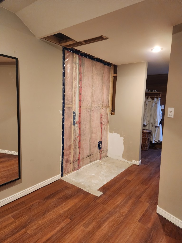 In a previous post, we outlined a bathroom renovation we had done which included a stacking washer and dryer next to the tub/shower: