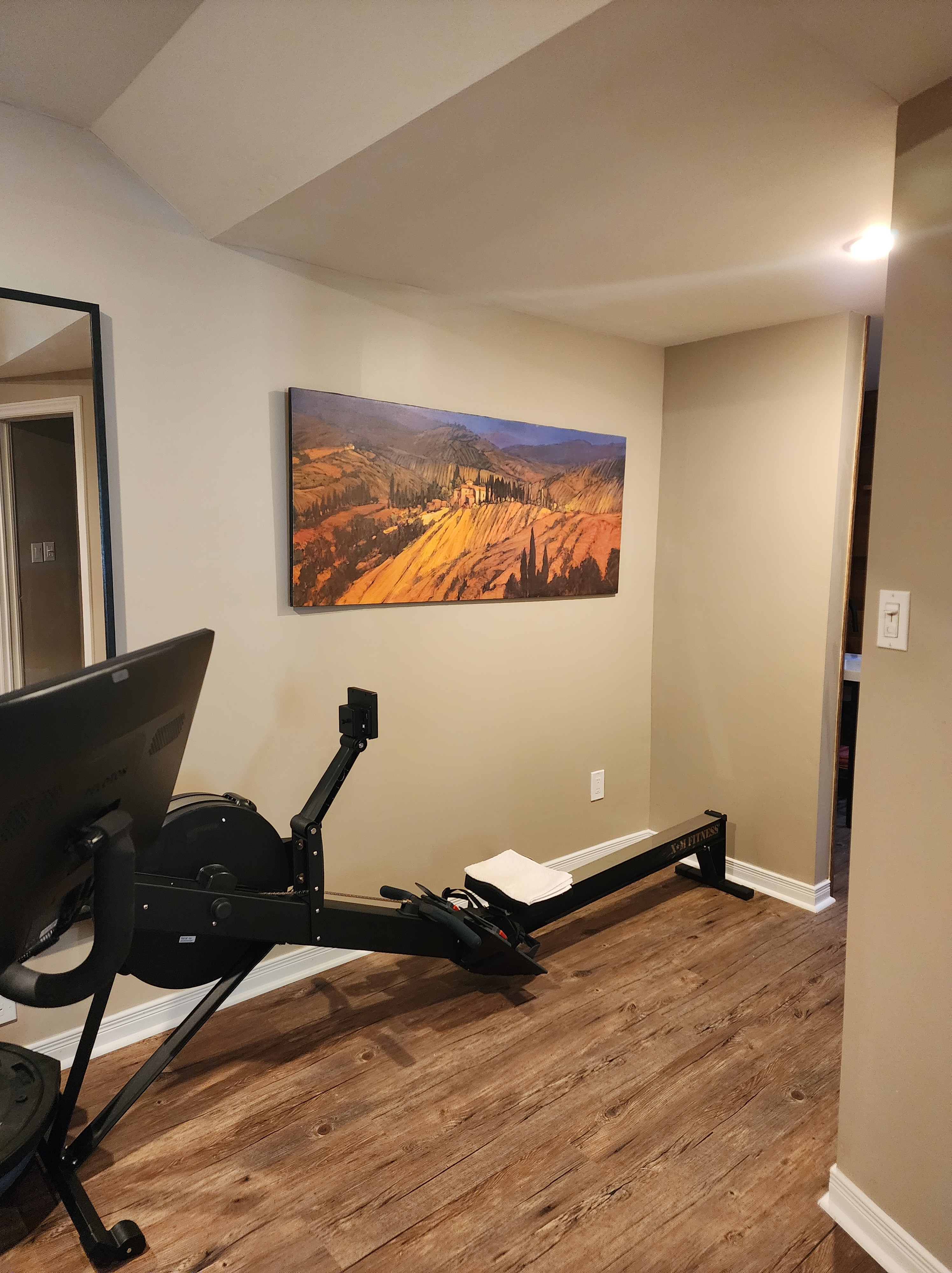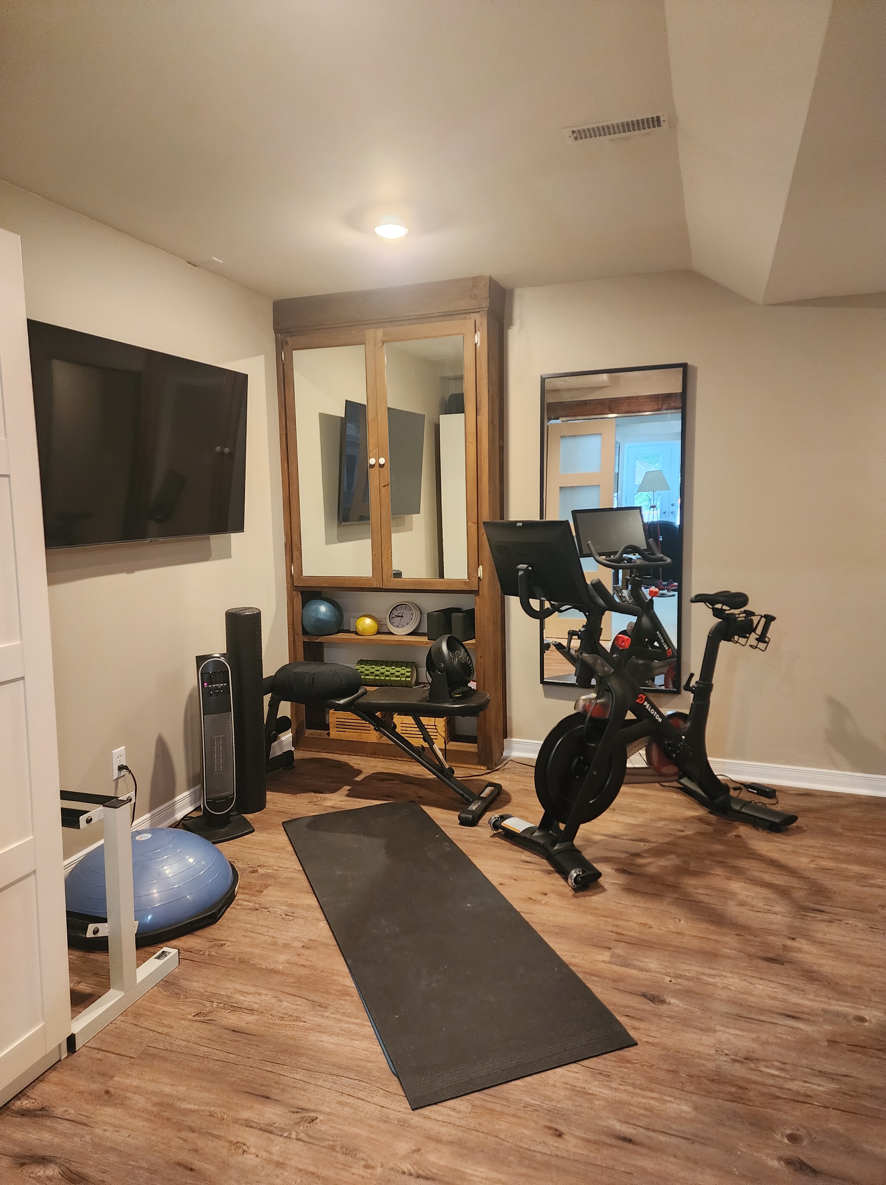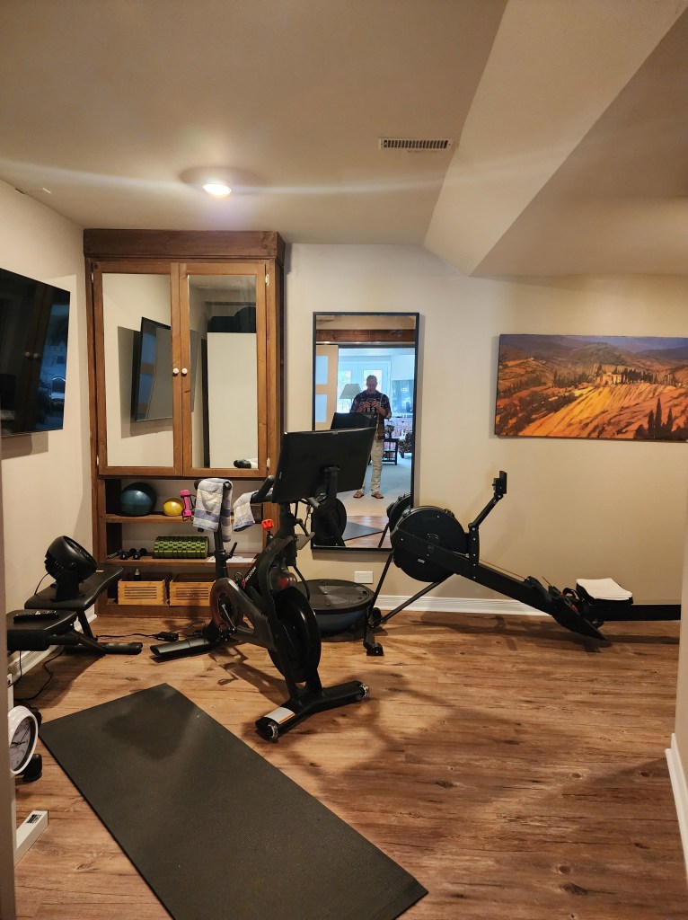 Relocating the laundry to the second floor bathroom, gave them a much larger gym area and admittedly, a much nicer one as well