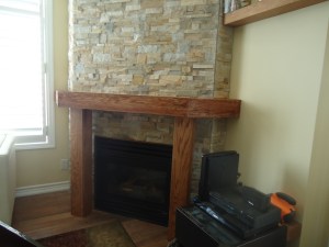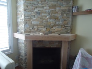 I removed the shelf and extended the front of the mantle by about 6 inches, giving us 12″ front to back in total and then added two columns underneath for support.