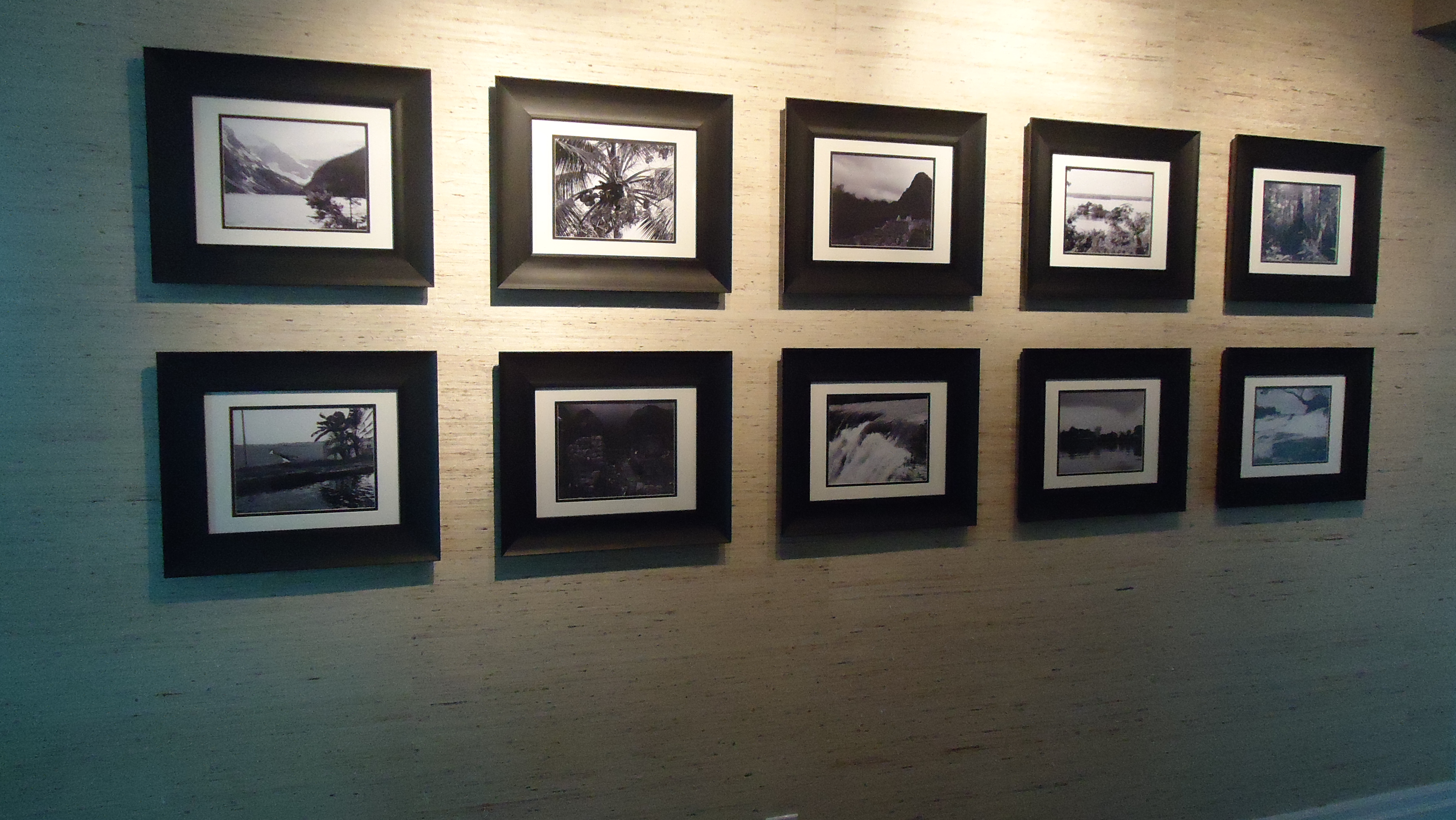 You may have seen some of these before in a previous post in a different context, like this gallery I did for a client recently to showcase the photos they had taken over the years in their travels around the world. I selected 10 photos from their collection and had them printed in black and white 8 X 10 and then matted and framed.