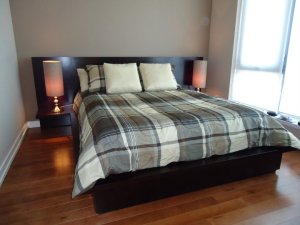 I looked at a two bedroom suite last week in Liberty Village (reclaimed railway lands that are being developed around King and Strachan) and the bedrooms are 9′ X 9′ and 10′ X 10′. When you consider that one wall has a window, one wall has a closet and another wall has the entry door, you have virtually no place for a dresser or an armoire.