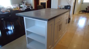 The client had specified 2 cabinets with one drawer in each and some book shelves along one end. She wanted an overhang to accomodate some stools and a look that was very simple and clean, nothing too ornate.