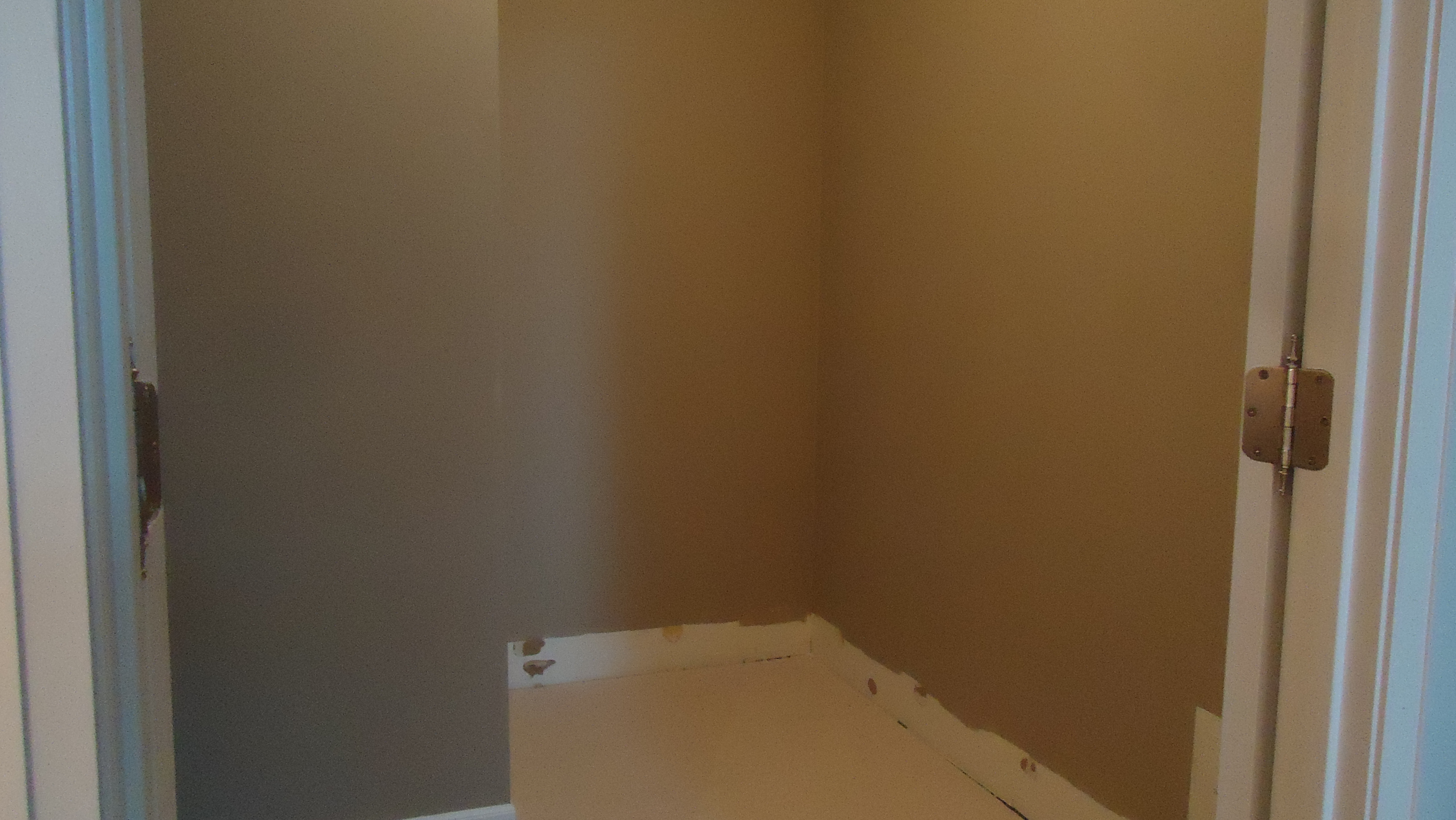 We started by removing the old shelving and some of the baseboards (I wanted the system to mount flush against the walls). Then we filled the holes and painted the closet to match the master bedroom, giving flow and unity to the space.