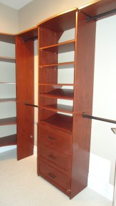 The Closetmaid system is one that I highly recommend. It’s easy to custom fit by cutting the closet rods with a simple hack saw and the top shelves with a table saw. It can also be customized as your needs change by adding more drawers and doors.