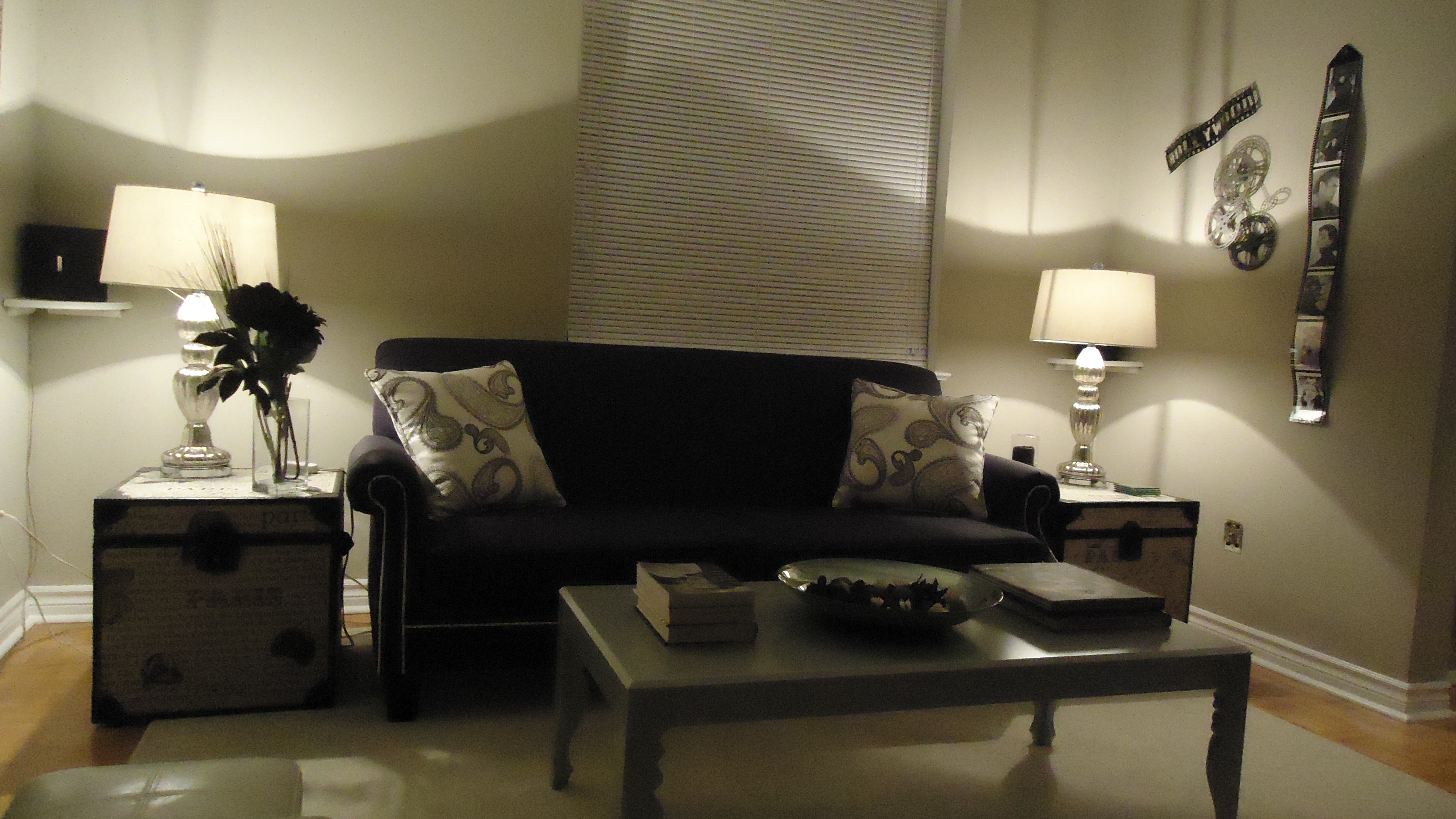 Here’s a great colour scheme that is elegant and sophisticated. A basic scheme of black and white with pops of purple and green.