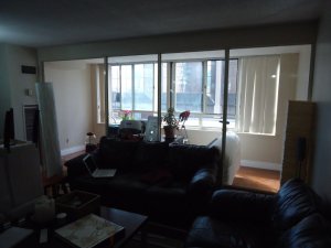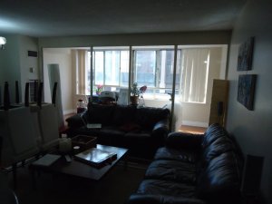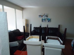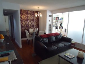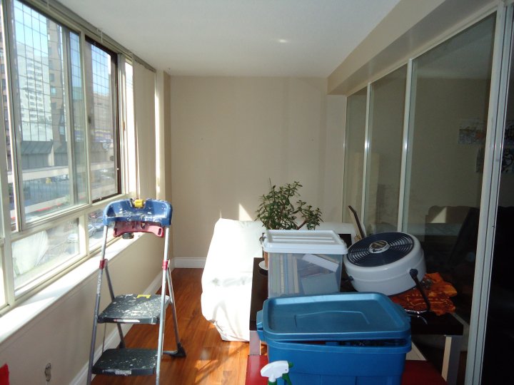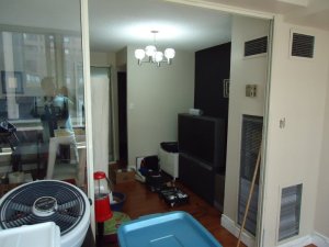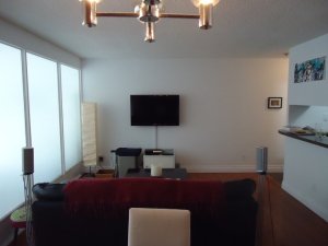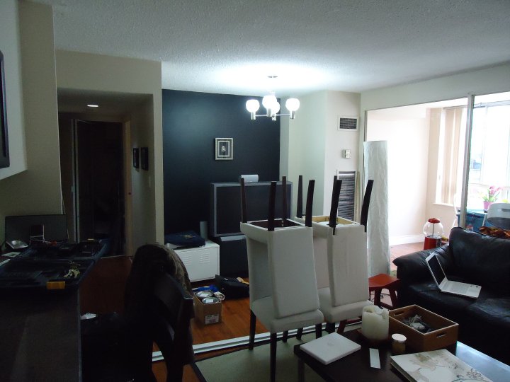I started by reorganizing the entire unit. The desk came out to the sunroom, one sofa went into the bedroom, the dining table came out to the dining area and the old TV was replaced by a thinner wall mounted one.