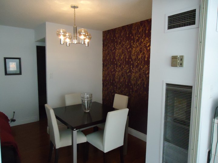 Some paint and wallpaper and window frosting on the sunroom windows (to add privacy and to help cozy up the space) were the finishing touches to making this virtually unliveable condo, liveable and enjoyable.