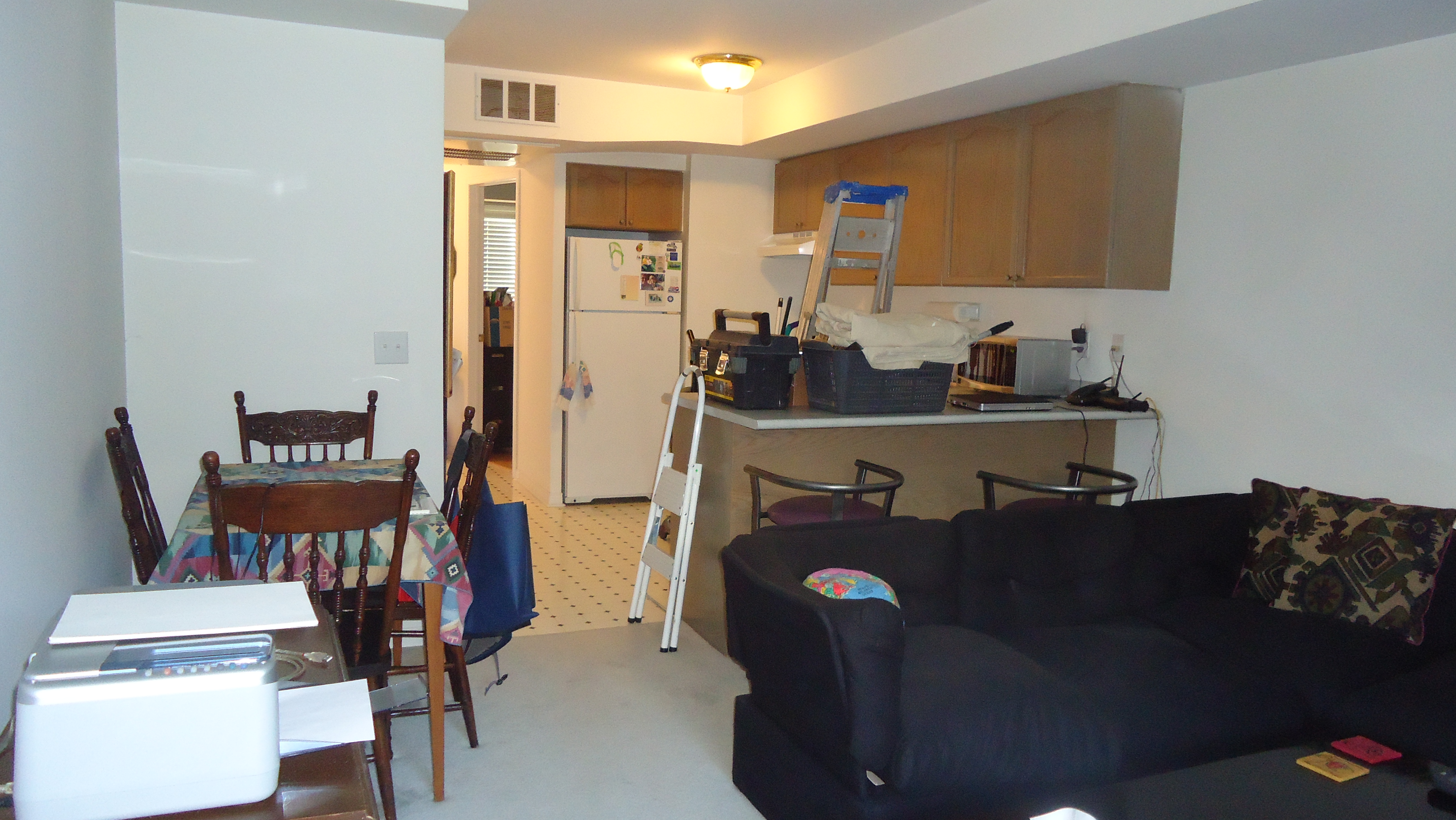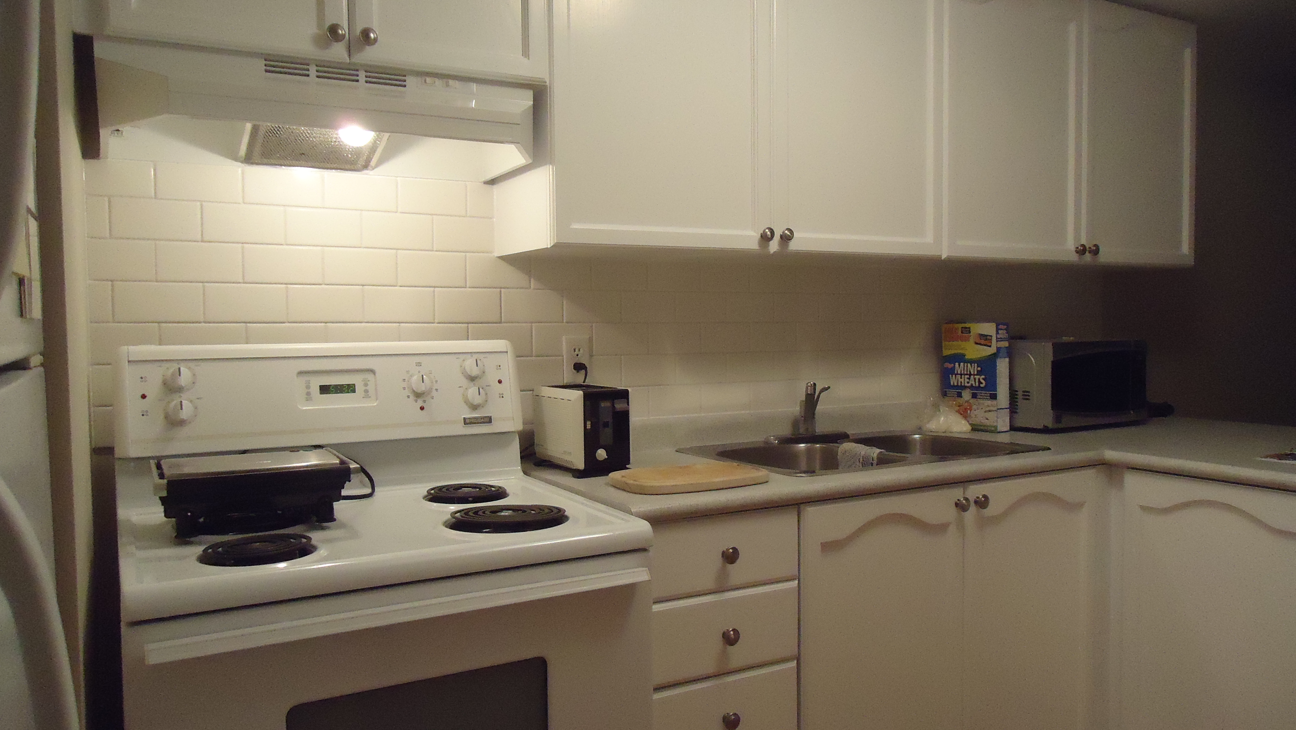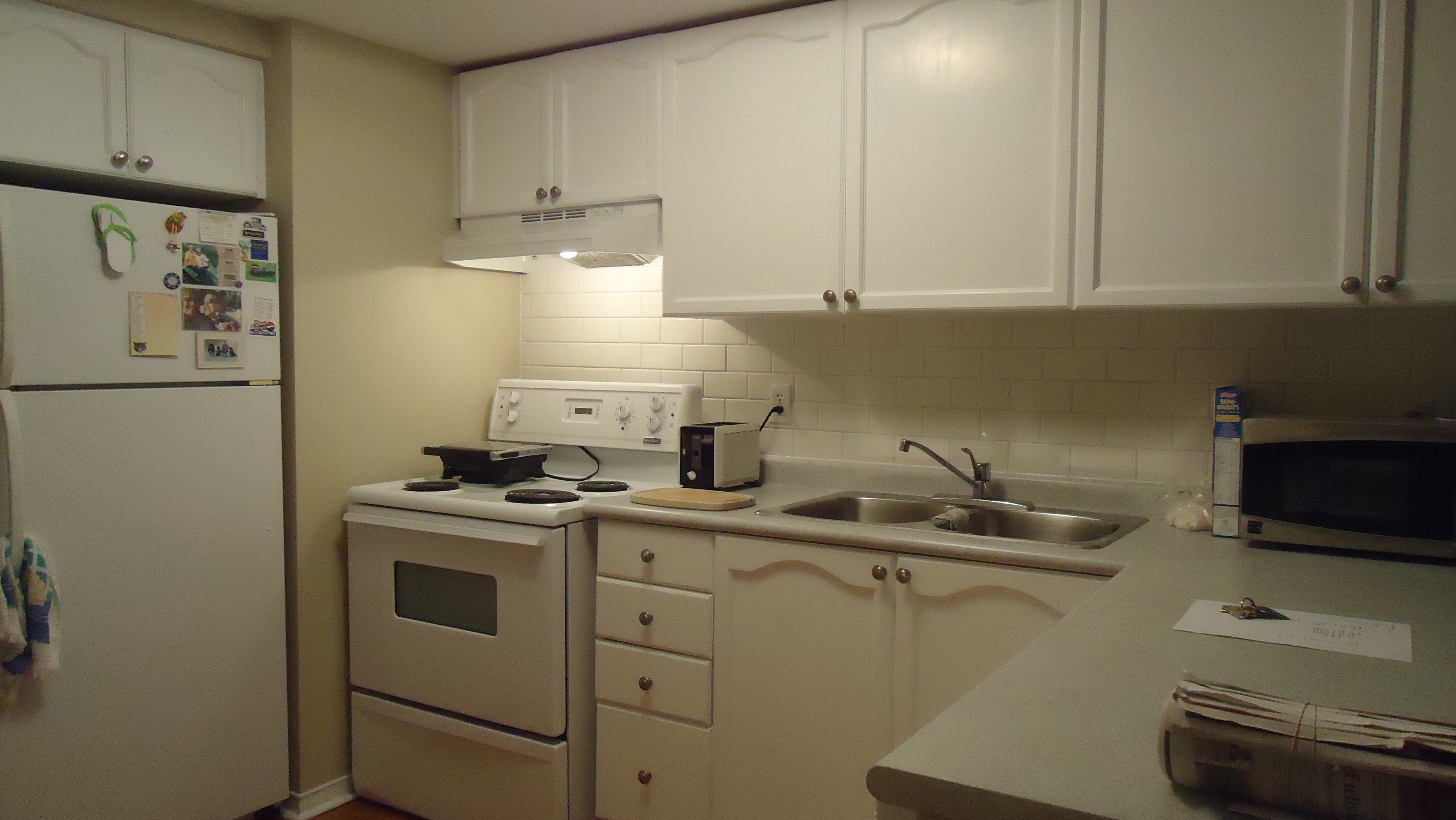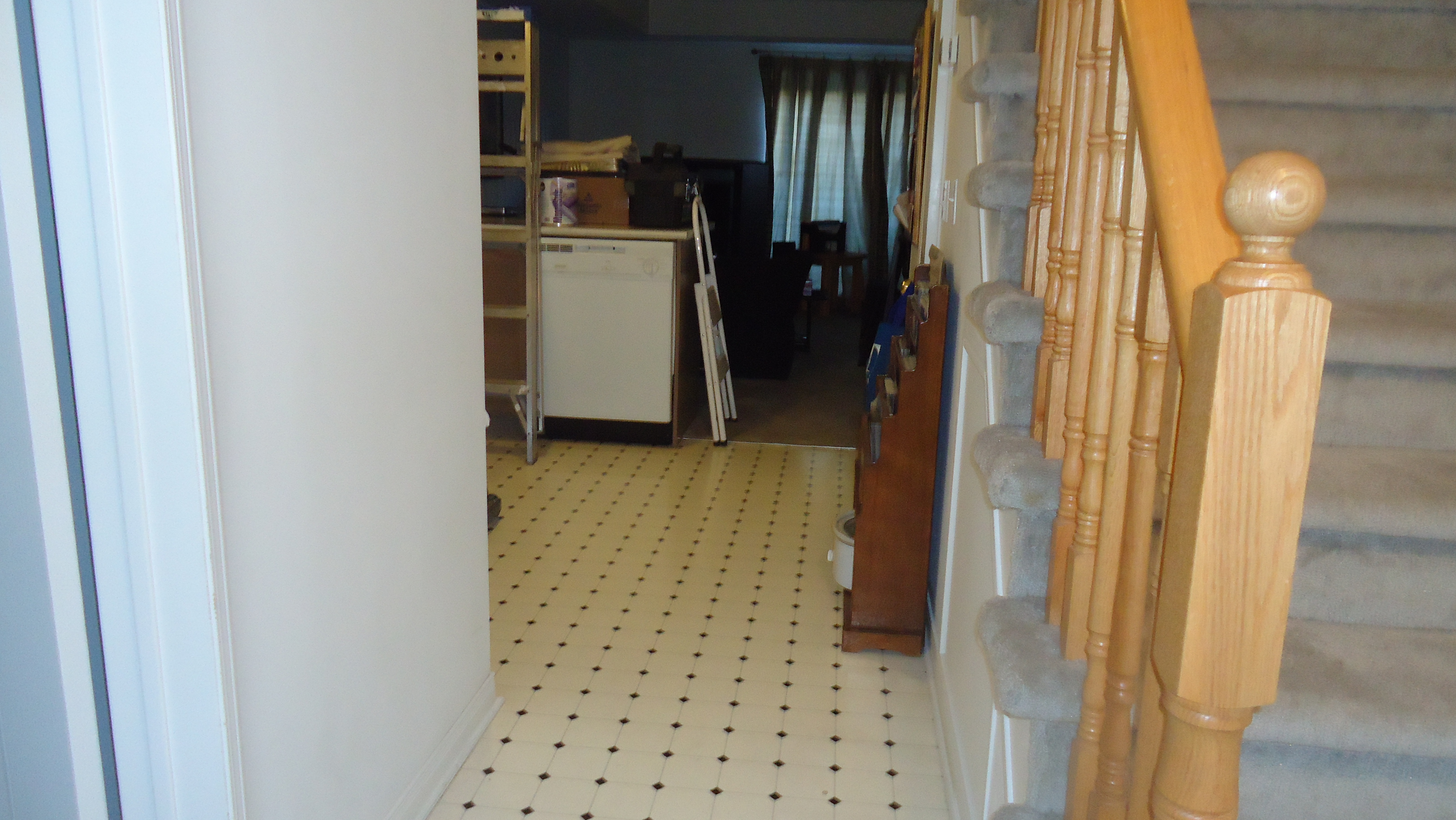 We were called in to get the place ready for sale. The entire home was re-painted top to bottom, the carpet and linoleum were replaced by a laminate floor and the kitchen was madeover in white with a new subway tile backsplash added.