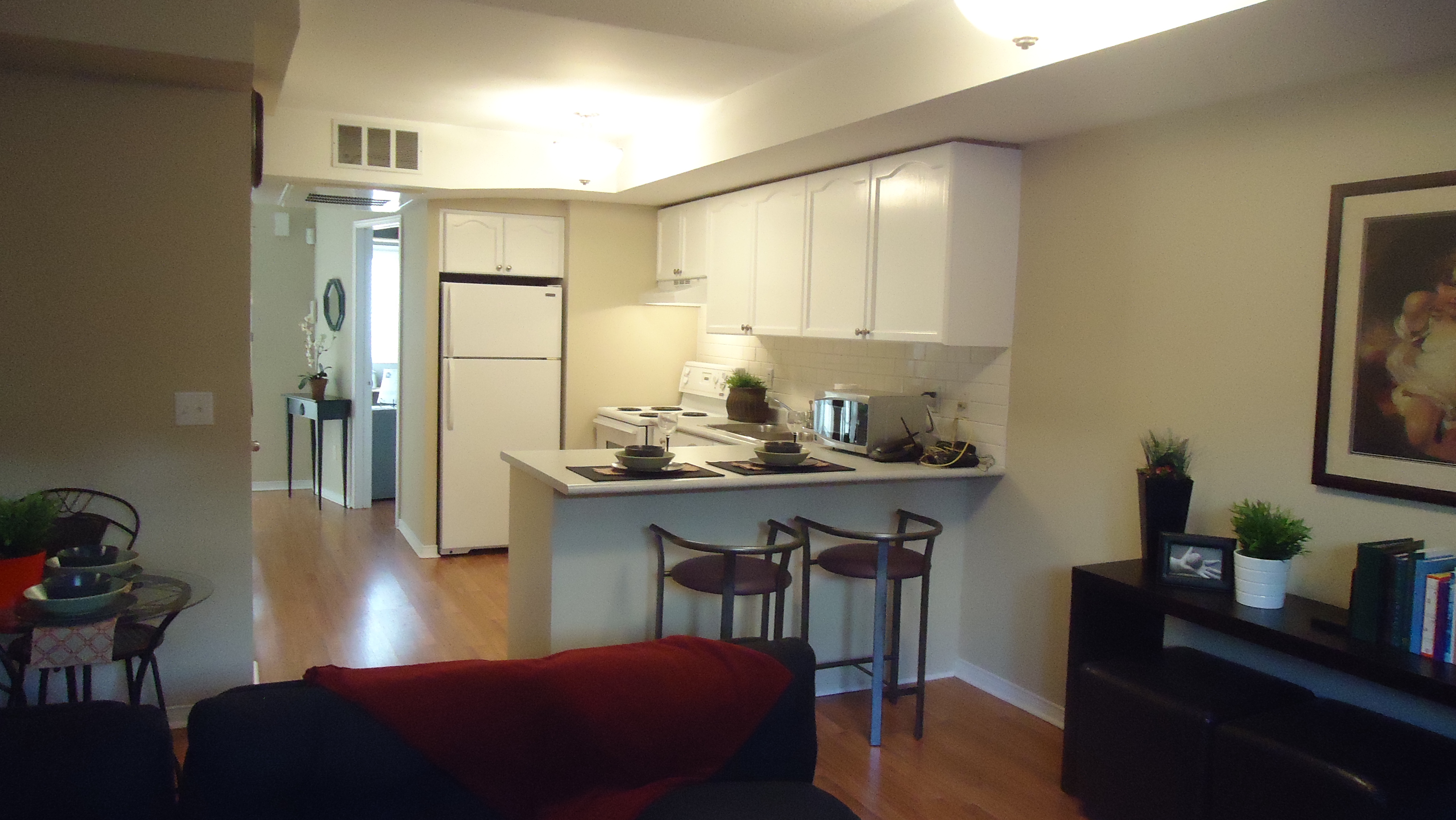 The home was a basement unit and the white kitchen and new flooring went a long way to brightening up this dark space.