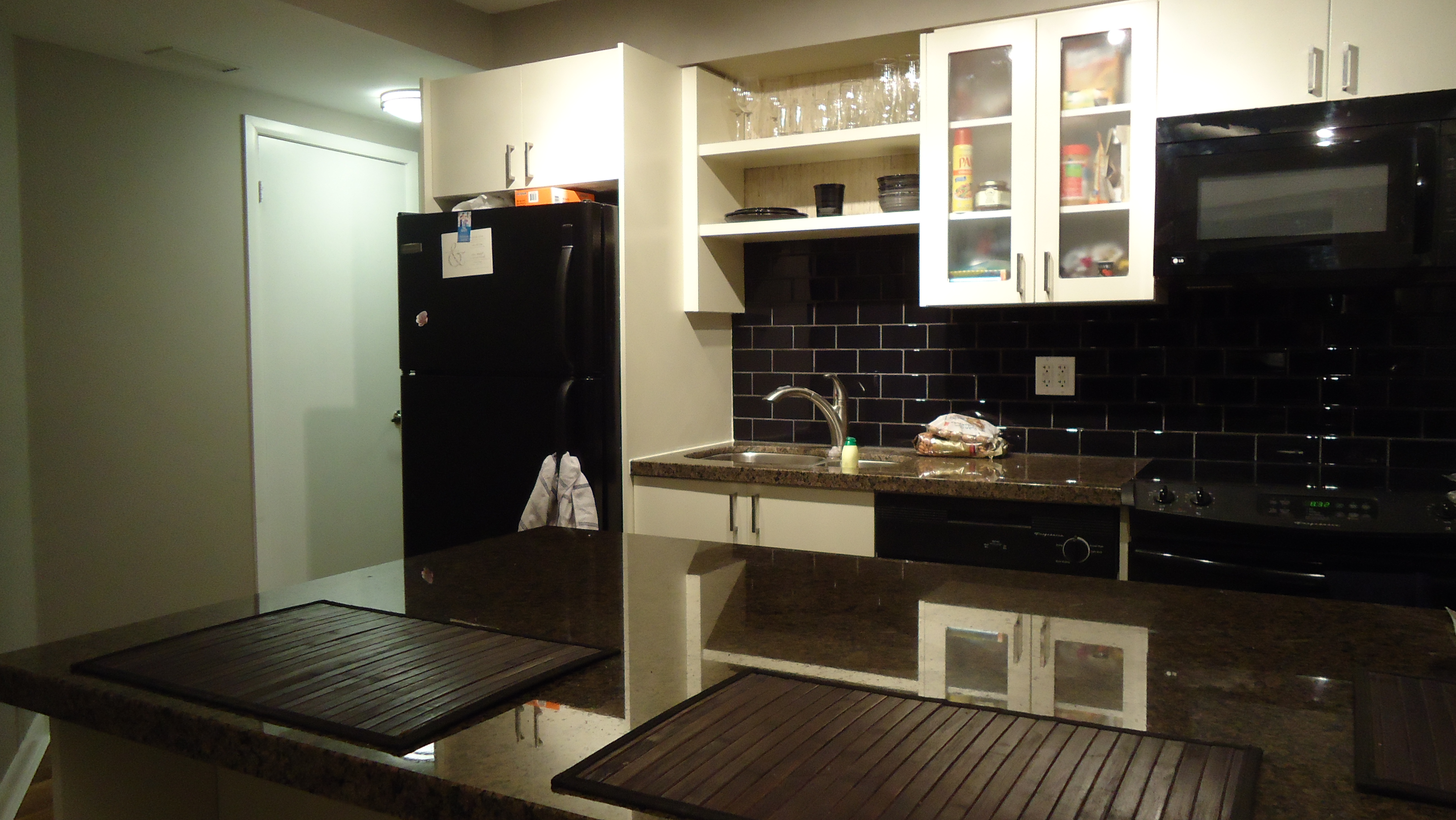 We chose a high gloss black subway tile for the new backsplash for two reasons. First, it would pick up the black tones in the granite and second, it’s a classic, timeless look that has wide appeal among buyers.
