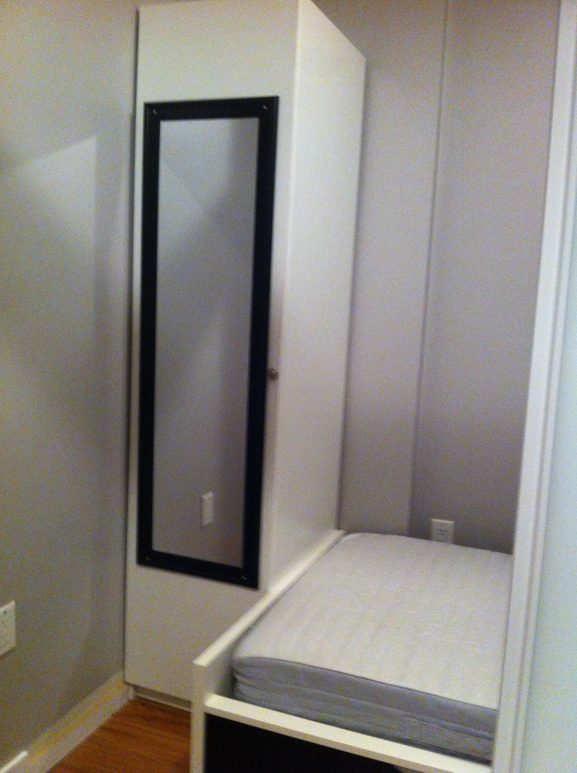 The baseboards were re cut and re attached and the result is a functional “dorm room” with lots of storage, a space to work, some privacy and a comfortable bed. Perfect for a student looking to live downtown in the heart of all the action.