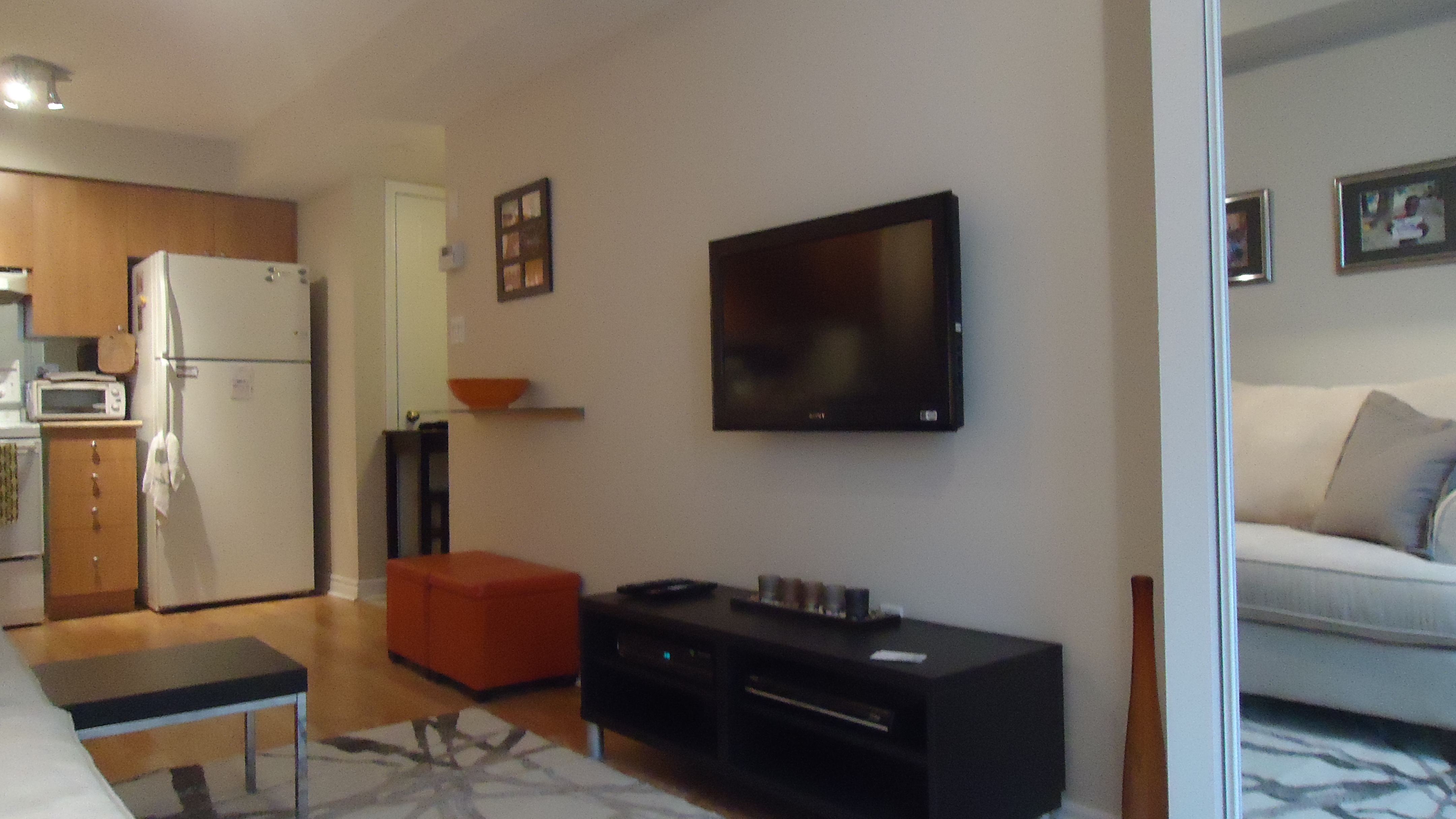 We began by decluttering a bit, as always. The large chunky bookcase had to go as did the rug and futon. The shelf under the TV served no purpose so we decided to keep it and simply relocate it.