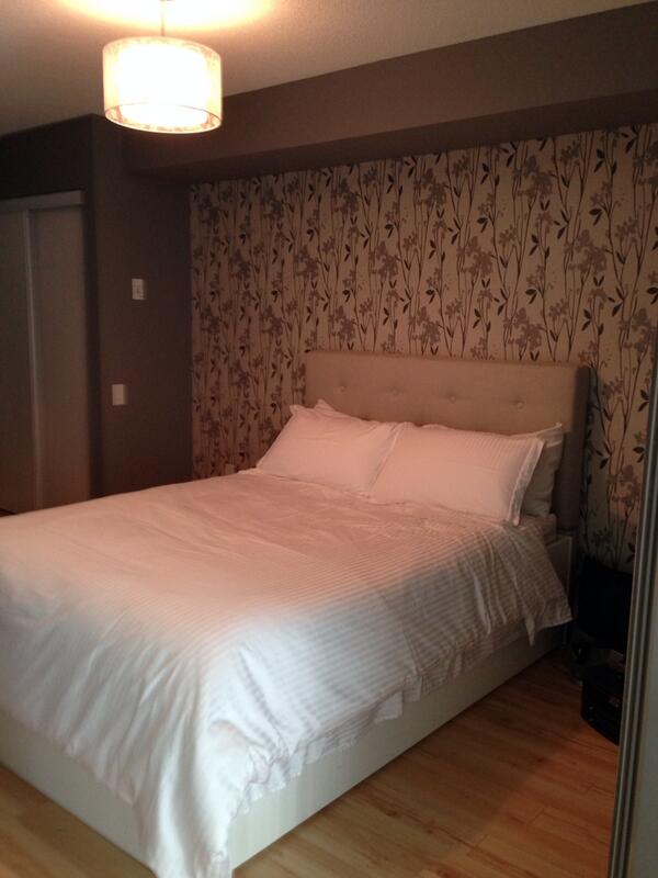 When I first arrived on site, the bedroom was pretty bland…white walls, cheap light fixture, dirty carpet, overall drab and boring.
