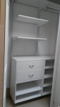 I just completed a closet in a home that had been just renovated. This was a brand new closet with no existing system. The clients were looking for some hanging storage, a couple of drawers and a lot of shelving. The finished closet gives them ample room to hang both long and short items, two large drawers and a ton of storage with “boxes” and open shelves. As their needs change, it will be easy to move things around or add new modular pieces to ensure that this closet always meets their needs. Have a look: