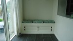 Very simple, just 2X4s for the frame, MDF for the sides, a melamine shelf for the top, a coat of paint and some outdoor chair cushions.