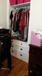 Part way through the demo, the client switched gears and decided on using a stand alone book case and having the closet hold her clothing. She was fine with not having a door and asked for three drawers, a hanging rod and a couple of shelves.