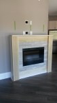 The first step was to install some tile around the insert. We chose a beautiful 3″ X 8″ limestone tile and installed it in a classic brick pattern.