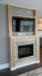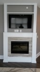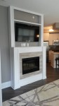 Since the TV was going to be mounted above the fireplace and we didn’t want the wires and cords visible from the side, I built columns and a “bridge” on top of the fireplace. The bridge will ultimately be a shelf to display some decorative items.