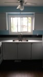 Such as three different counter tops, one that didn’t even span from wall to wall. It actually stopped a foot and a half from the end so the previous owner pieced together the balance of the top with leftover back splash tile and on the other side of the kitchen was a cabinet with a wood counter top.
