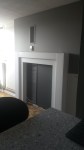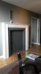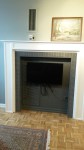 For a focal point, the owner mentioned that in a previous home she had bought a reclaimed fireplace surround and mounted her TV inside and wondered if that would work here. A fireplace is always a great option for a focal point but the wall we planned on using was covered in HVAC vents, electrical and cable outlets and a thermostat. There was no way of finding something that would fit around all that “stuff” so I decided to custom make one.