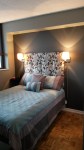 The bedroom needed a few things, mainly furniture and storage solutions. I installed a new closet organizer based on her needs and bought a bed frame. We needed a dresser and a headboard. The challenge was that the bed is a 3/4 bed (48″ wide) so finding an “off the shelf” headboard was tricky and the wall where the dresser would go was only 16″ deep and most dressers are 19-24″.