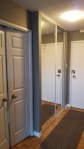 New mirrored closet doors, a pair of bedroom doors and simple sunscreen roller blinds with (again) custom made valances (the living room ceiling was two different heights over the windows so I had no choice but to build something) completed the project.