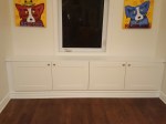 These wall units were all built pretty much the same way. On site, using IKEA upper kitchen wall cabinets, melamine shelving and lots of trim.