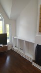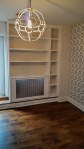 In this case, each wall unit design had it’s own challenges to deal with; 2 old radiators (one that was staying requiring a removable rad cover and one that was being removed), a high vaulted ceiling and a window that was off centre.