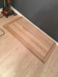 In sourcing the materials, I knew I wanted solid oak and I found that if I put 3 oak stair risers together, it gave me almost the exact dimensions I wanted for the table and at $17.99 each, how could I go wrong.