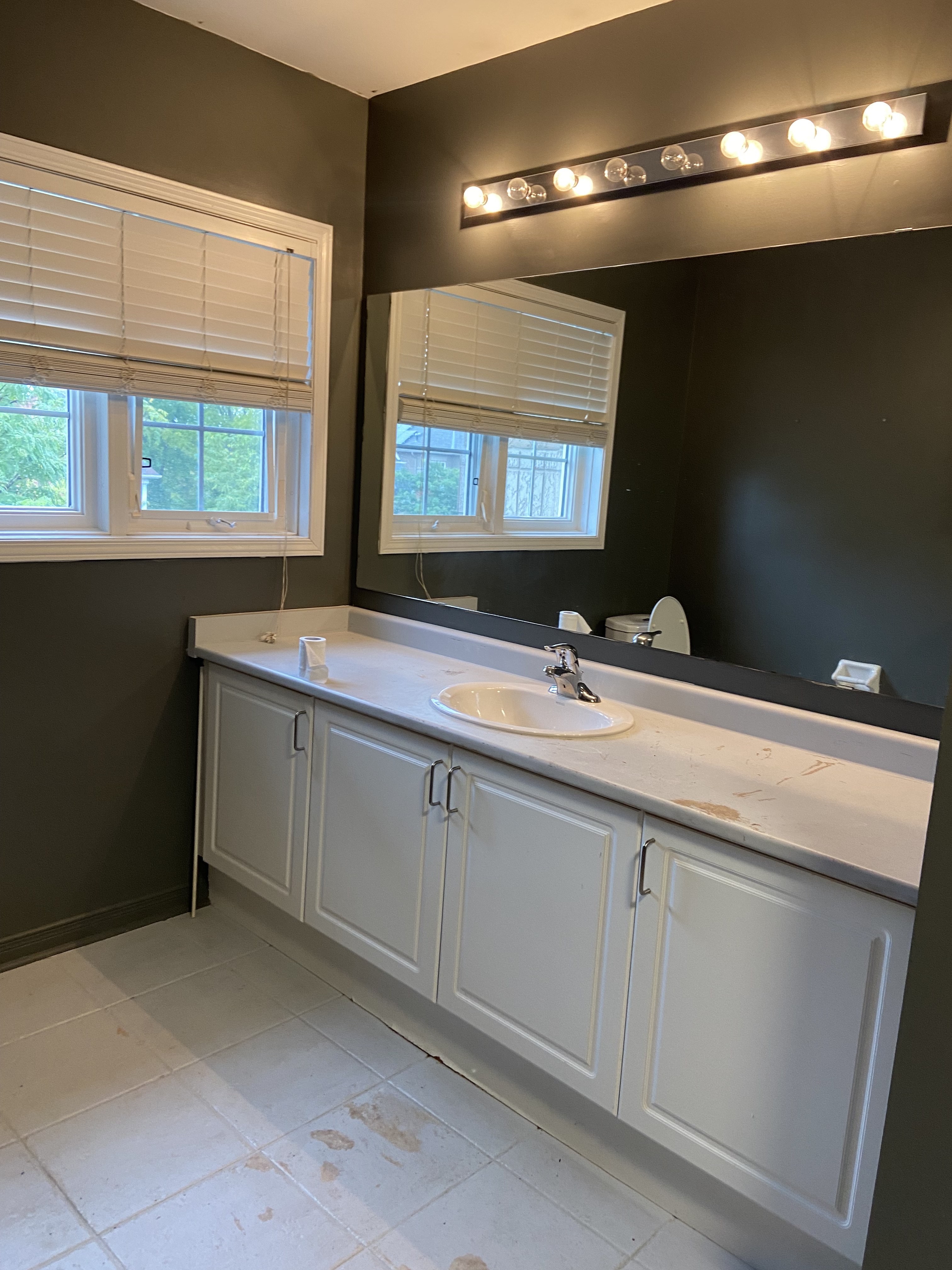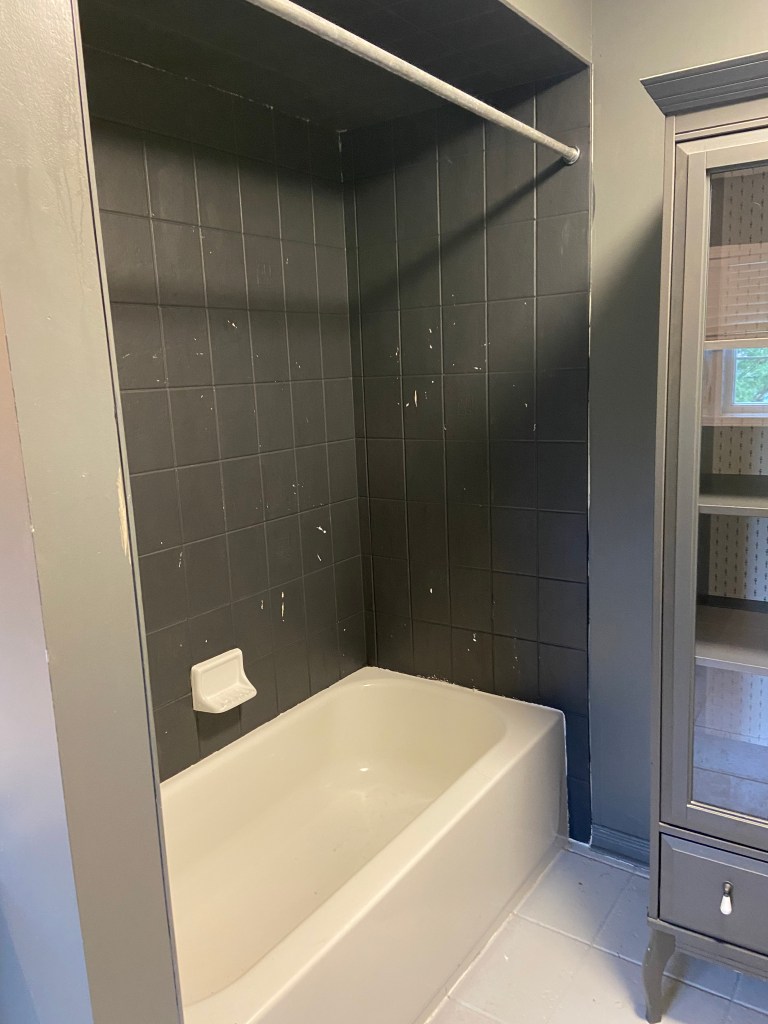 The bathroom was, well, gross, old and dated and all-around kind of nasty. The clients tried to give it a new paint job to refresh it during the pan demic but unfortunately that wasn’t enough.